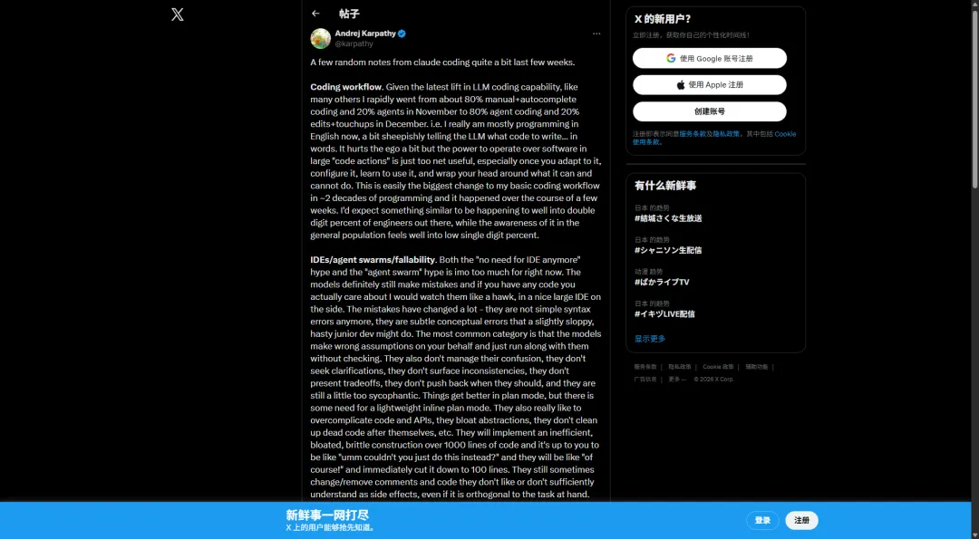 1.Claude重塑编程:几周内80%代码AI生成,20年最大变革! (A few random notes from Claude coding quite a bit last few weeks)