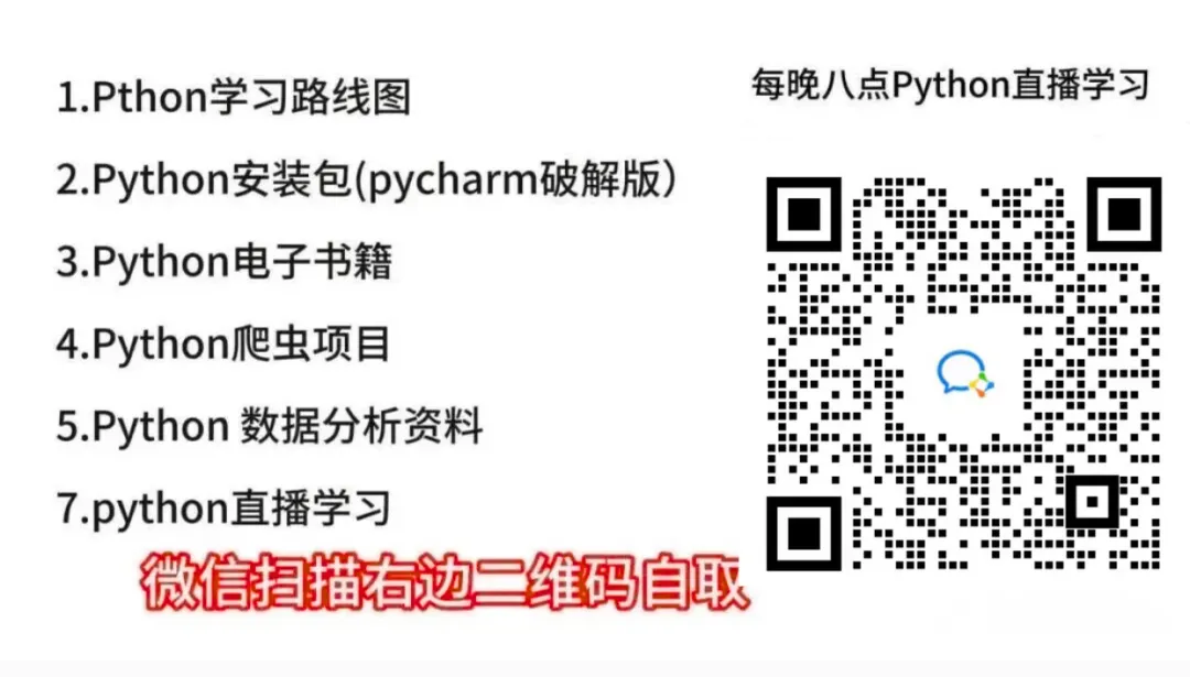 正想学习 Python 的同学,我也准备了零基础学习资料包,包含课件笔记、PDF 电子书、经典小项目源码、问题解答等,全部免费领取,帮你少走弯路,快速上手