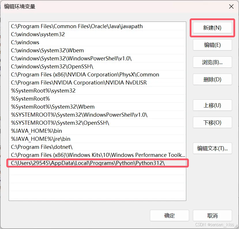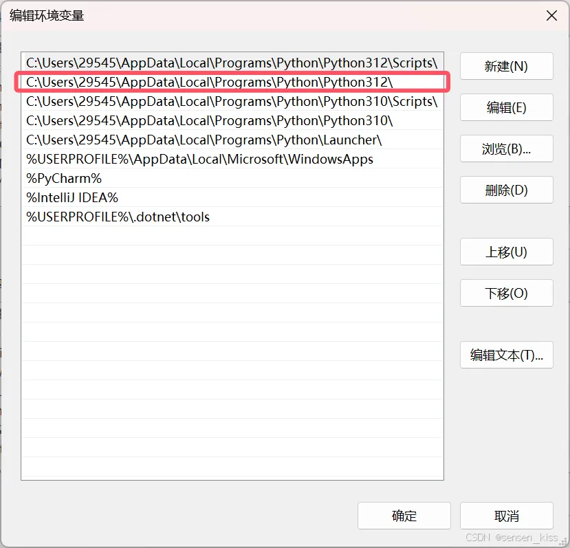 如图所示,然后按下回车打开命令行后输入path=%path%;C:\Users\29545\AppData\Local\Programs\Python\Python312\ 红色部分是对应的路径名,可以看前面讲解怎么找到路径名