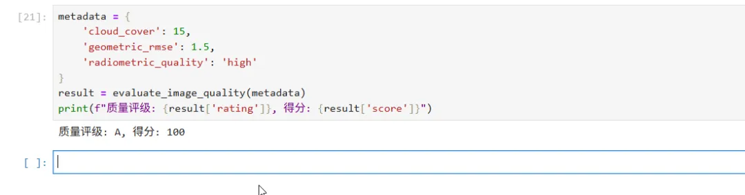 metadata = {'cloud_cover': 15,'geometric_rmse': 1.5,'radiometric_quality': 'high'}result = evaluate_image_quality(metadata)print(f"质量评级: {result['rating']}, 得分: {result['score']}")