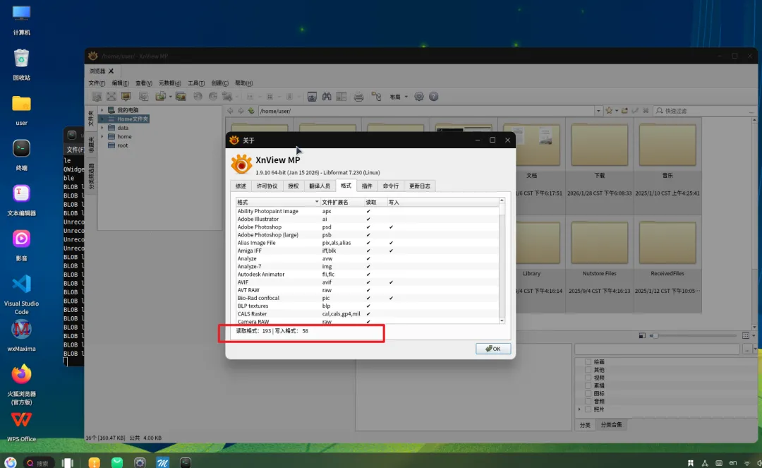 1. 推荐Linux用户使用,XnView MP 支持中文界面,功能强大,支持的格式众多。XnView MP对个人用免费,非开源,但商用需购买许可。XnView公司的产品还有之前我介绍过的XnView Clasic(经典版)和XnConvert,此次重点推荐的是XnView MP(MP为Multi Platform的缩写,跨平台版),支持Windows,Linux和Mac系统。有安装包和便携版(非安装,解压即可使用)。XnView MP的最新版本为v1.9.10,它的Windows版最新安装文件大小为54.9M,便携版压缩包大小为94.1M。2.功能上:XnView MP > XnView Extended(拓展版)+XnConvert > XnView Standard(标准版)+XnConvert > XnView Minimal(迷你版)+XnConvert。3. XnView MP功能强大,支持的格式众多,但Windows支持的格式较多,Linux较少,具体不同Linux系统支持的格式还不一样。Windows7,10 和11支持情况是:读取格式203种,写入格式59种;OpenKylin 2.0支持情况是:读取格式193种,写入格式58种;OpenEuler24.03支持情况是:读取格式191种写入格式56种。Windows7,10和11:读取格式203种,写入格式59种
