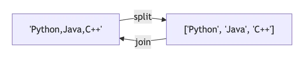 s = "Python,Java,C++,JavaScript"# 分割print(s.split(',')) # ['Python', 'Java', 'C++', 'JavaScript']print(s.split(',', 2)) # 只分割前2次# 行分割text = "line1\nline2\nline3"print(text.splitlines()) # ['line1', 'line2', 'line3']# 连接languages = ['Python', 'Java', 'C++']print(', '.join(languages)) # 'Python, Java, C++'