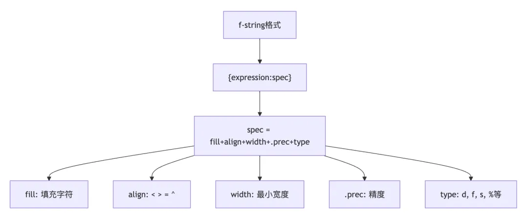 name = "Python"version = 3.12# 基本用法print(f"{name}{version}") # 'Python 3.12'# 表达式print(f"{2 ** 10}") # '1024'print(f"{name.upper()}") # 'PYTHON'# 格式说明符print(f"{3.14159:.2f}") # '3.14'print(f"{0.75:.2%}") # '75.00%'print(f"{1000000:,}") # '1,000,000'print(f"{42:05d}") # '00042'# 调试输出x = 10print(f"{x=}") # 'x=10'