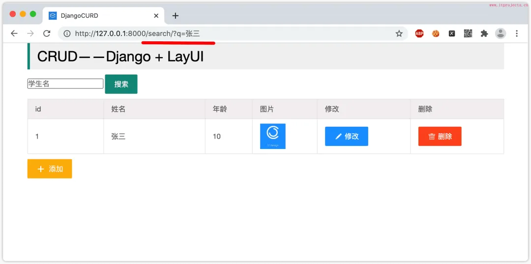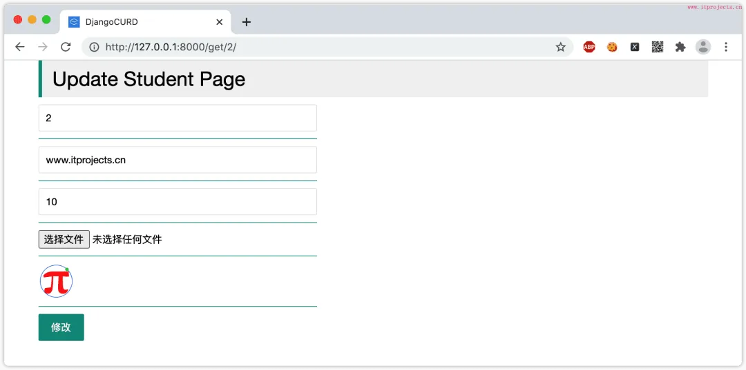 # -*- coding:utf-8 -*-from django.shortcuts import render,redirectfrom django.views.decorators.csrf import csrf_exemptfrom django.conf import settings # 获取 settings.py 里边配置的信息import osfrom .models import *# 1.1.前往 index 页(all)defall_page(request): data = student_info.objects.all() content={'data': data}return render(request, 'student/all.html', content)# 1.2.前往 add 页defadd_page( request ):return render(request, 'student/add.html')# 2.增@csrf_exemptdefadd_student(request): t_name = request.POST['tName'] t_age = request.POST['tAge'] t_image = request.FILES['tImage'] fname = os.path.join(settings.MEDIA_ROOT, t_image.name)with open(fname, 'wb') as pic:for c in t_image.chunks(): pic.write(c) student=student_info() student.t_name=t_name student.t_age=t_age# 存访问路径到数据库 student.t_image = os.path.join("/static/media/", t_image.name) student.save()return redirect('/allPage')
