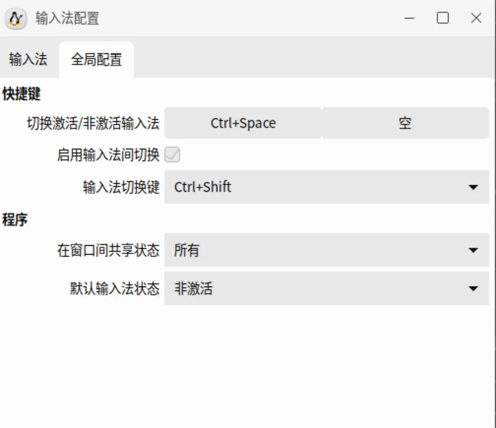 # 检查im-config配置(某些系统使用)$ im-config -l # 列出当前配置$ im-config -m # 显示当前激活的框架# 手动切换框架,保存到 /etc/X11/xinit/xinputrc$ im-config # 设置框架(会弹出图形界面)