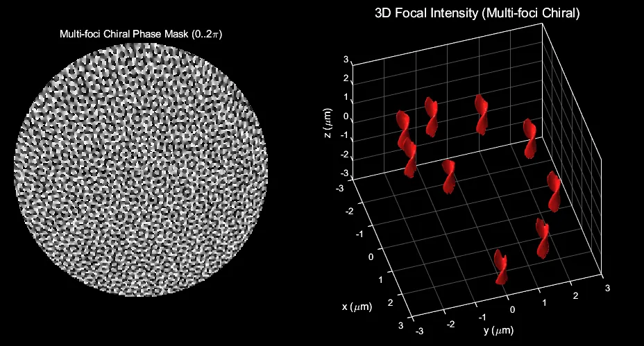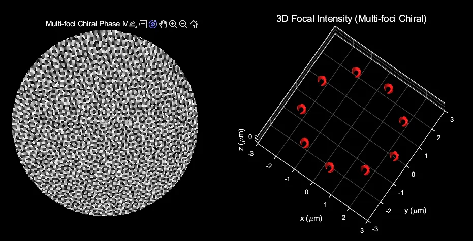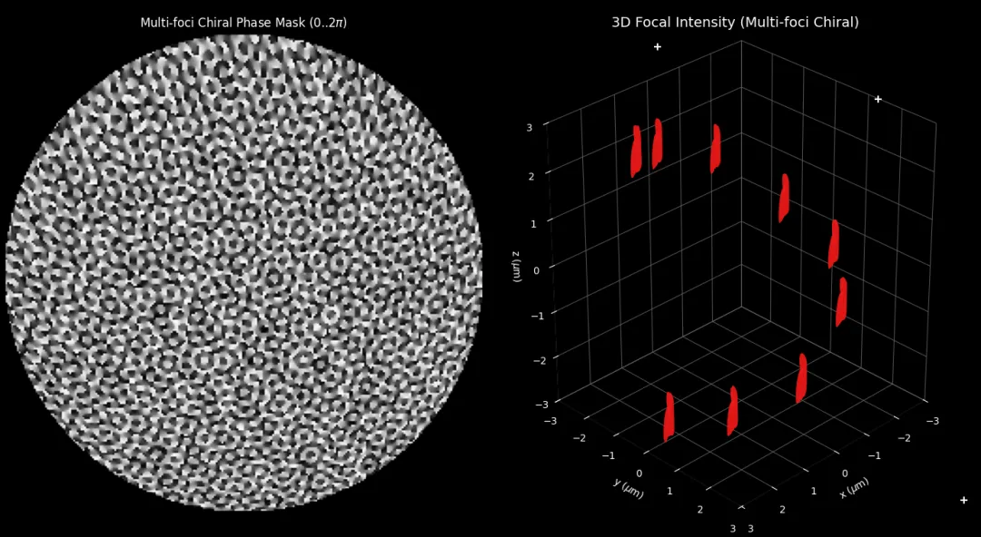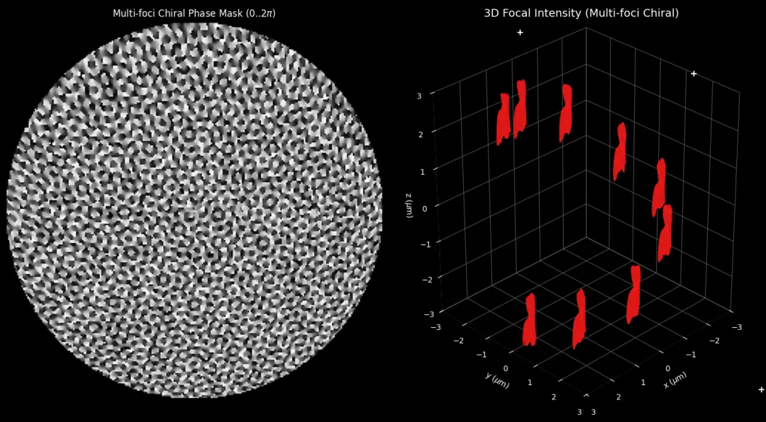 将“多焦点”“三维分布”与“手性结构”融合到同一光场设计框架中,不仅可以显著提升系统功能密度,也为复杂光场在先进制造与光学信息领域的应用提供了新的可能。