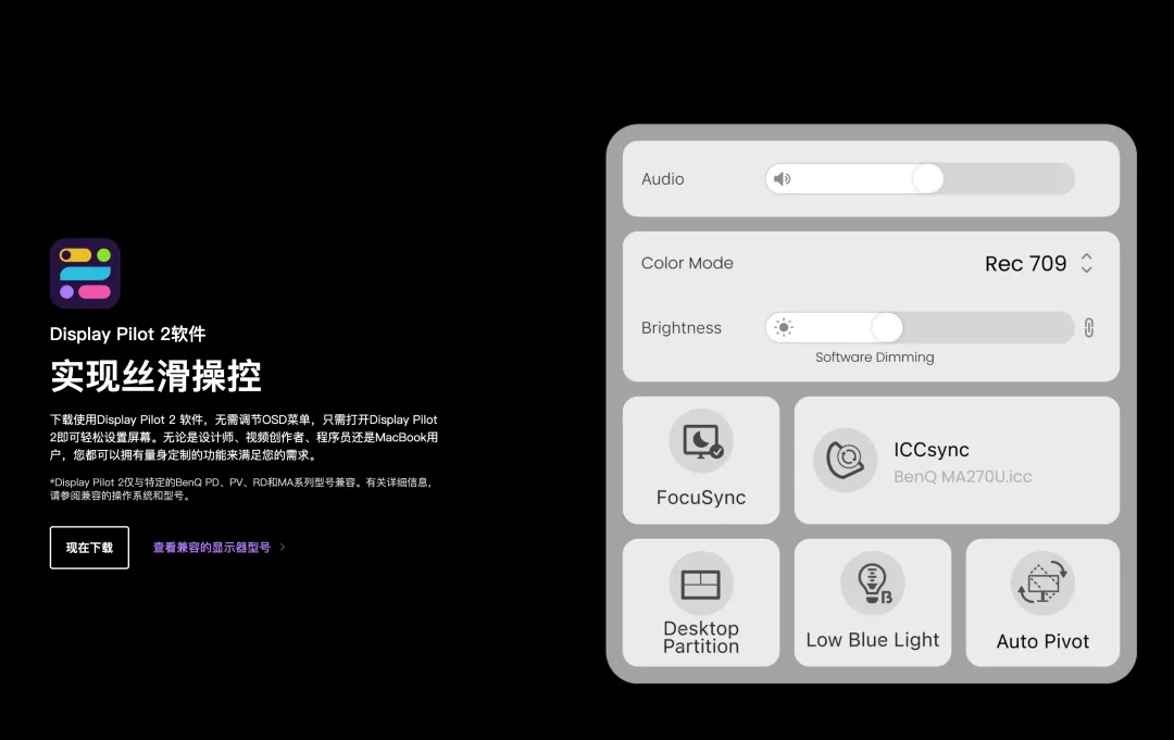 RD280UG 的 Display Pilot 2对我这种“懒得按键、但又想把环境调舒服”的人很友好: