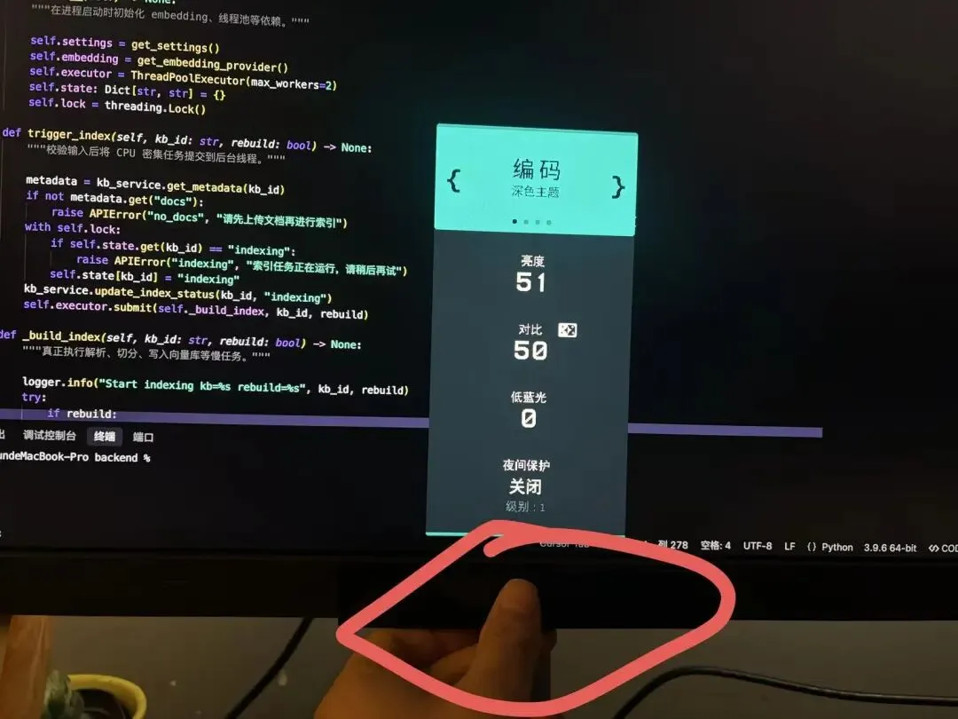 我以前用普通显示器写代码,最烦的一点是:深色主题要么灰成一片、层级不清;浅色主题又容易刺眼发白。尤其到了夜里,眼睛累的时候,代码里那些细微的差别(变量、注释、字符串、报错提示)会变得更难“扫一眼就分辨”。