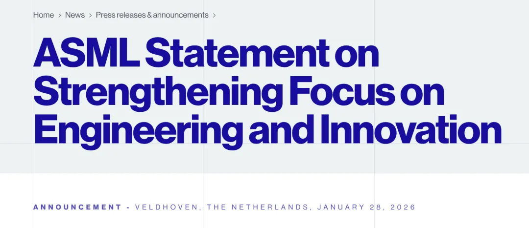 这篇新闻稿(https://www.asml.com/en/news/press-releases/2026/strengthening-focus-on-engineering-and-innovation)就CEO级别的新闻稿而言,可谓切中要害。