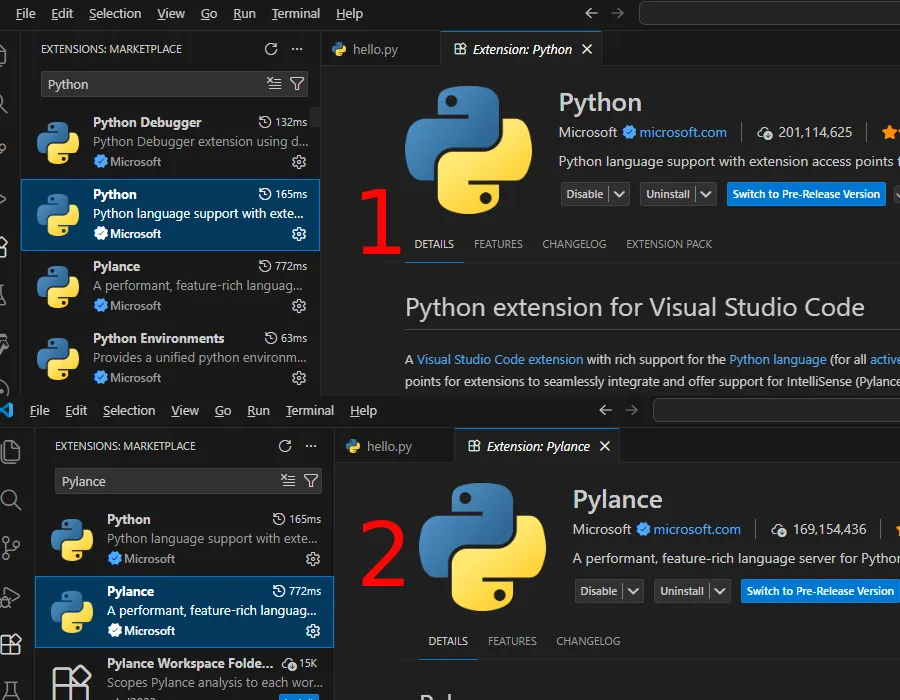 Python(Microsoft官方版)和Pylance(语法提示增强)