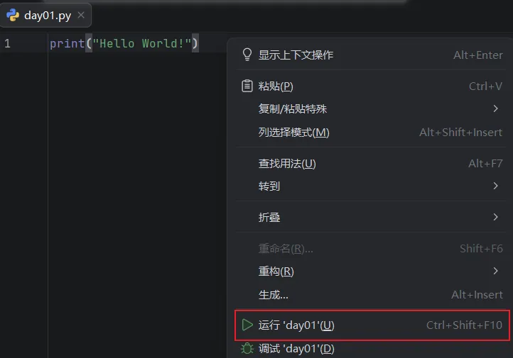 在希望运行的文件中,右键、Run