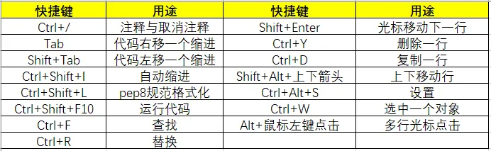接下来,我们看一下在Pycharm中常见的快捷键:我们把鼠标光标放到希望注释/取消注释的行上,按住Ctrl+/添加或者取消注释2.调整代码缩进:Tab/Shift+Tab