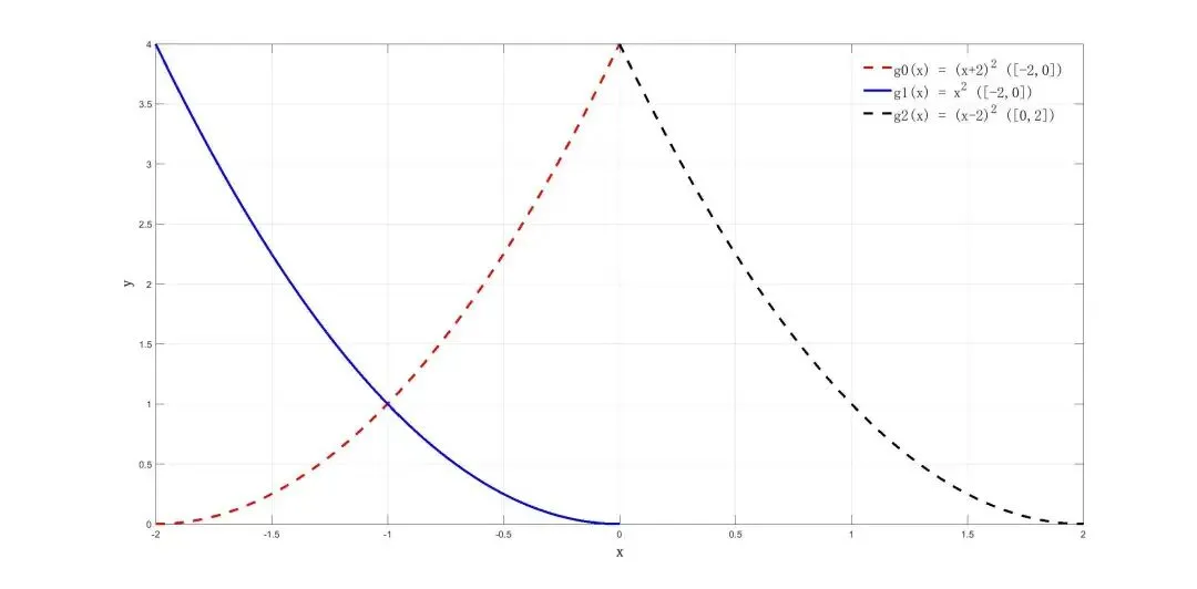 在区间的右端点取到最大值并且在区间内单调递增, 在区间的左端点取到最大值在区间内单调递减,同时为了满足上述的对称性,我们可以得到下面的仿真图: