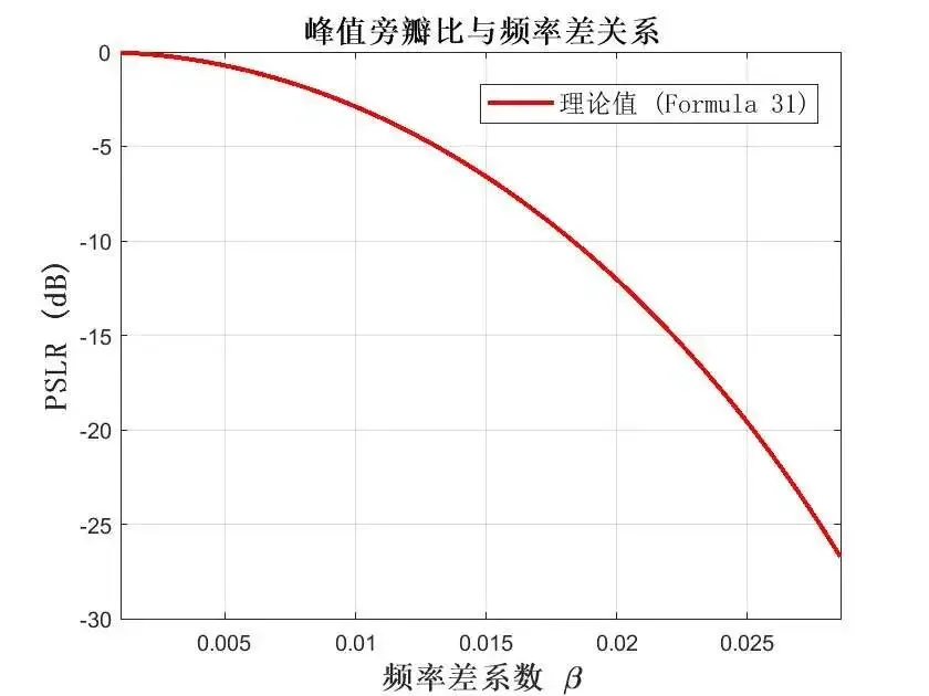 由此可以得到频率差与峰值旁瓣比(PSLR)的表达式:
