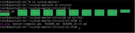 1、登陆"S2-053"靶机,执行如下命令,进入目标环境所在目录
