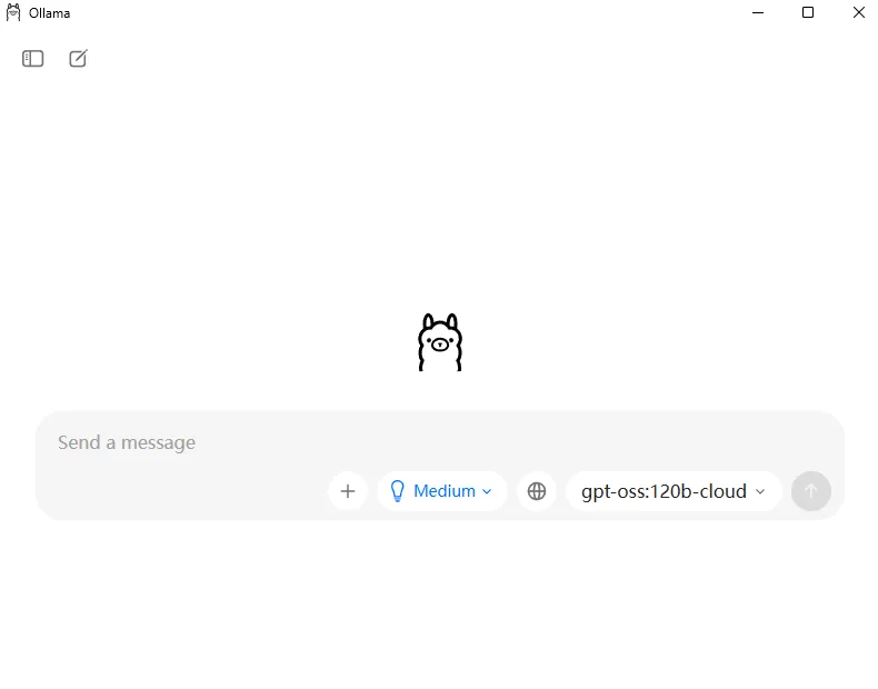 安装完成后,打开ollama,右下角可以选择模型,在默认情况下,系统可能配置了一个云端模型,此时就可以进行聊天交互(如下图),可以在聊天框内进行交互