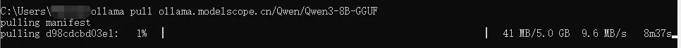 ollama pull ollama.modelscope.cn/Qwen/Qwen3-8B-GGUF