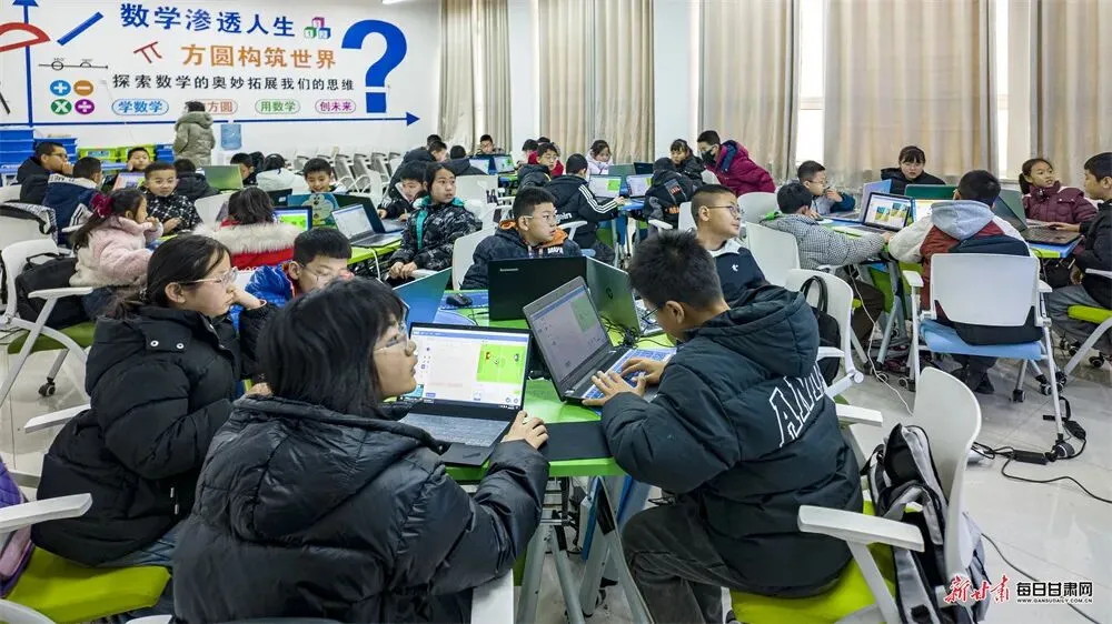 教学采用“项目驱动+小步快跑”模式,专业教师通过游戏化项目引导零基础学生入门。课堂上,孩子们专注设计智能小游戏,课间自发组成“编程沙龙”交流探讨。