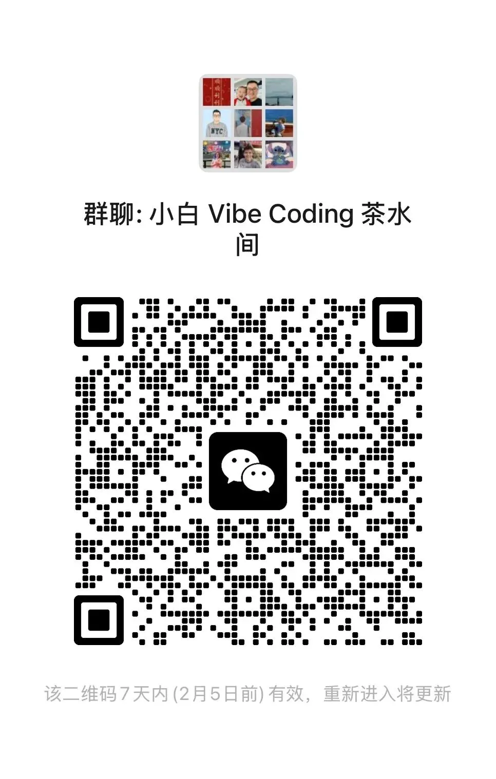 最后,拉一个小白 Vibe Coding 群,希望和不懂甚至畏惧代码的同学(其实就是我🐶)一起学习,包括但不限于产品/运营/设计/普通用户……