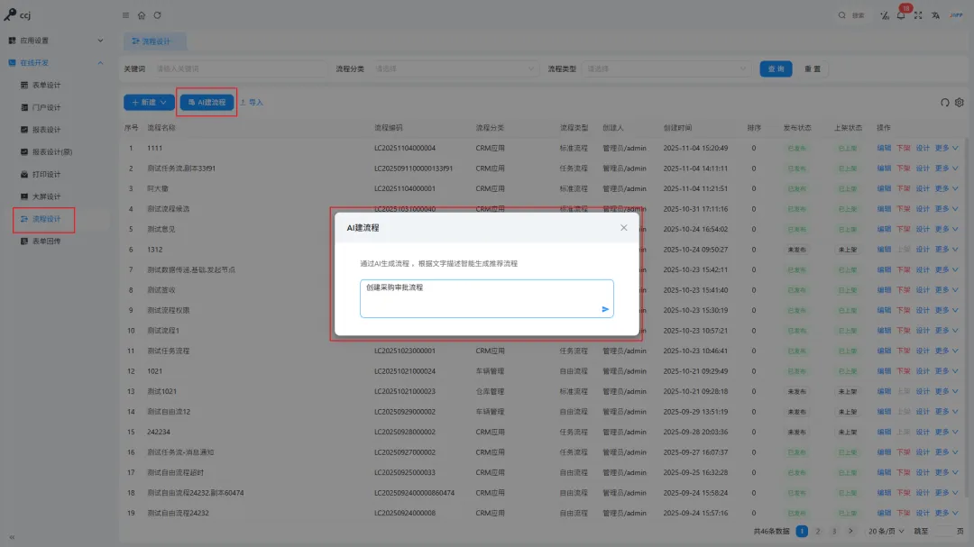 此次V6.1 版本重磅推出AI创建流程与AI模型配置两大核心功能,进一步将AI能力融入开发全链路,智能化重构业务流程搭建与AI模型管理模式,为企业级应用开发注入全新动能。