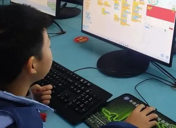 小学部的编程教室里充满了兴奋的声音。在这里,支教老师们针对小学生特点,采用项目式学习理念,以Scratch 3.0官方平台及社区资源为核心,摒弃单一的传统教科书模式,让同学们在实践中体会编程的乐趣。