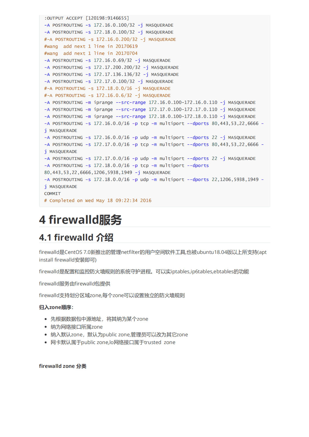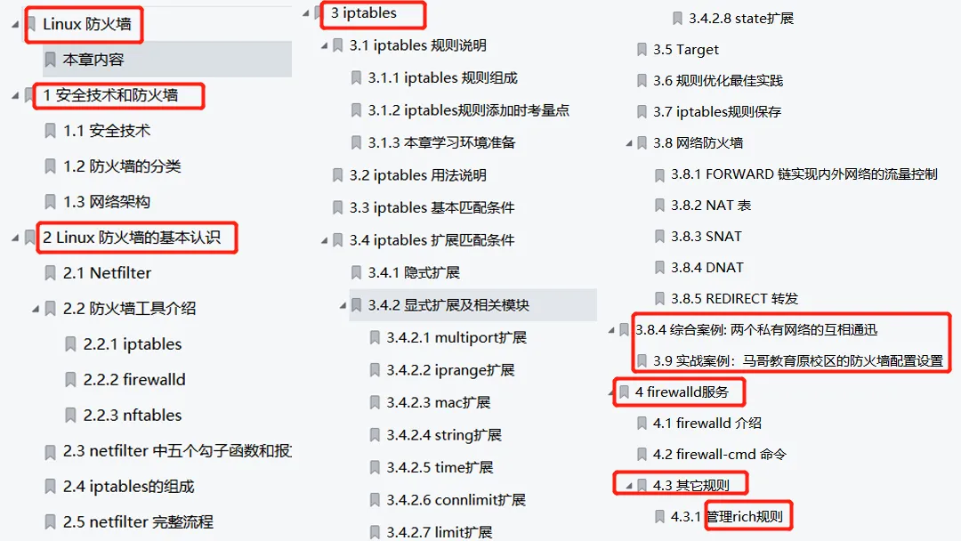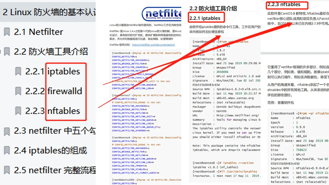 第二大部分内容介绍了三种常见防火墙工具:iptables, firewalld以及nftables
