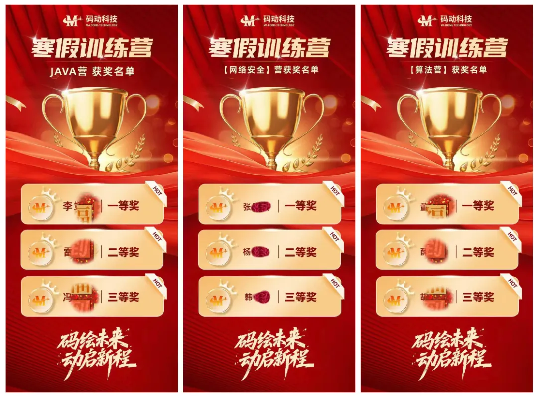 当新春的脚步悄然临近,一段充实而滚烫的学习旅程也圆满画上句点。近日,码动科技寒假训练营正式落下帷幕,为期数周的沉浸式学习中,来自各地的学员们齐聚云端,在Java开发、算法进阶、C/C++编程、网络安全核心领域深耕细作,用专注与坚持浇灌成长,用代码与逻辑书写蜕变。一张张线上专注听课的截图、一份份满载创意的作业成果、一句句温暖有力的微信指导,都成为这个冬天最珍贵的成长印记。