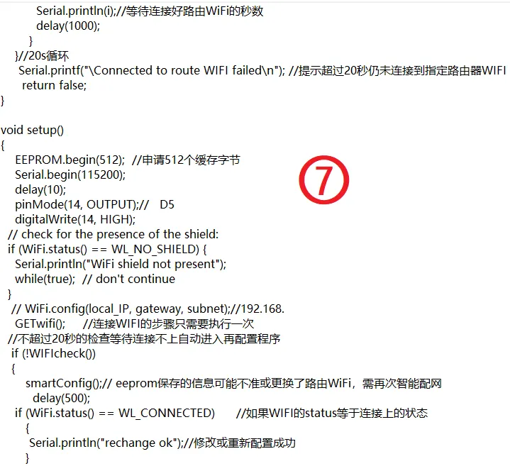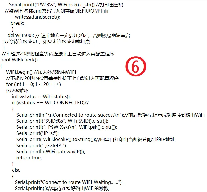 ○额外加了20秒超时判断(WIFIcheck()函数),若EEPROM中的信息失效(比如路由密码修改),自动重新进入智能配网,避免模块“变砖”。
