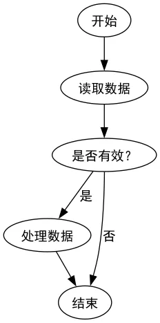 import os# 一定要在 import graphviz 之前os.environ['GDFONTPATH'] = r'C:\Windows\Fonts'os.environ['GV_PLUGIN_PATH'] = '' # 禁用 pango(关键)from graphviz import Digraph# 这一行是“生死线”,不设置编码方式看到的是一堆 5F 59 00 CB 中文乱码dot = Digraph( format='png', encoding='utf-8' )dot.graph_attr.update( charset='UTF-8', fontname='SimHei')dot.node_attr.update( fontname='SimHei')dot.edge_attr.update( fontname='SimHei')# 添加节点dot.node('A', '开始')dot.node('B', '读取数据')dot.node('C', '是否有效?')dot.node('D', '处理数据')dot.node('E', '结束')# 添加边dot.edge('A', 'B')dot.edge('B', 'C')dot.edge('C', 'D', label='是')dot.edge('C', 'E', label='否')dot.edge('D', 'E')# 流程图渲染 dot.render('flowchart_cn')