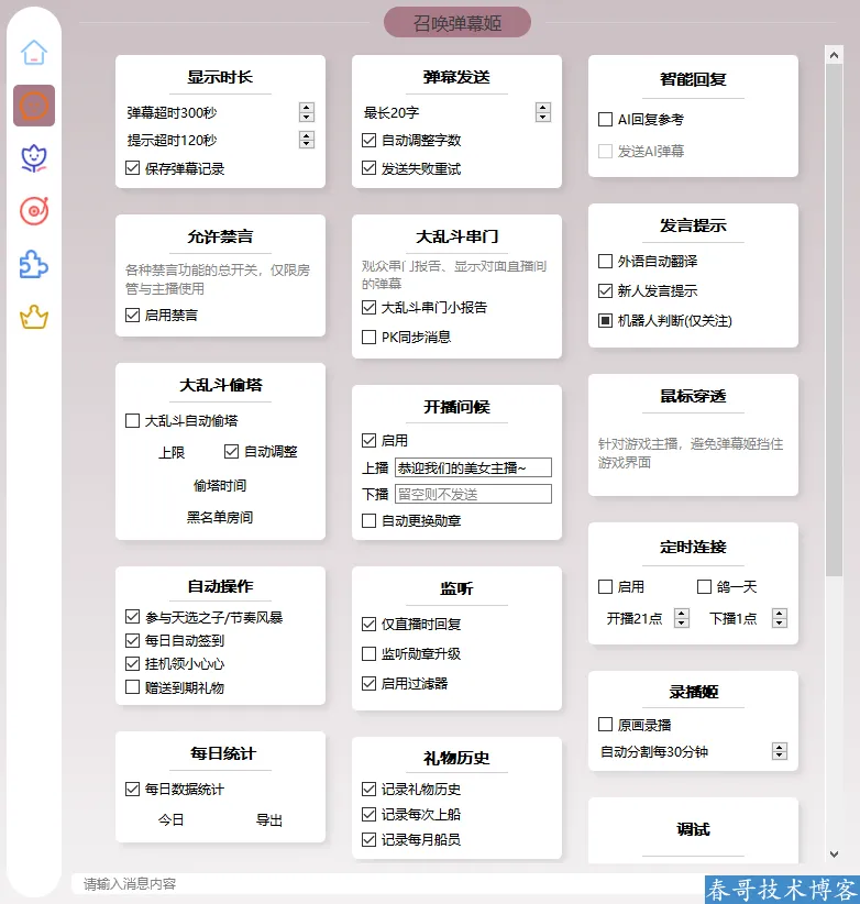 传统的直播辅助工具往往功能单一,弹幕、点歌、答谢、数据统计需要切换多个软件,操作繁琐且容易出错。“神奇弹幕”系统的设计哲学首先是集成化。它将“弹幕姬”、“答谢姬”、“点歌姬”、“回复姬”等核心模块,与多种AI大模型能力、自动化工作流无缝整合进一个统一的管理平台。这意味着主播只需面对一个控制中心,即可调度所有直播互动功能,构建出一个稳定、高效的现代化播出环境。这种集成不仅提升了操作便利性,更通过数据互联,为智能决策提供了基础。