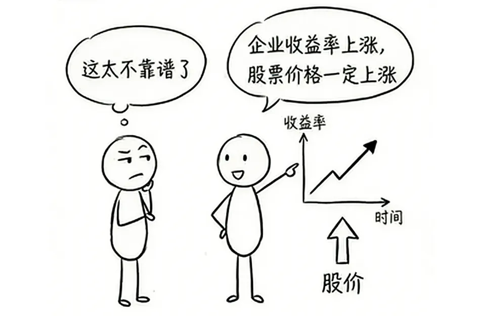 也许有人会说,这太不靠谱了,股票价格上涨最关键的因素是企业的收益率,收益率上涨,股票价格一定上涨。