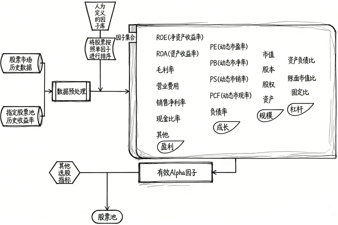 于是大家都同意这个办法,各自确定其关键因素去了。这里就用财务的一些因素来看一下,多因素(多因子)模型应该如果选股。其实单单就财务数据而言,影响股价变动的因素就有很多,如图: