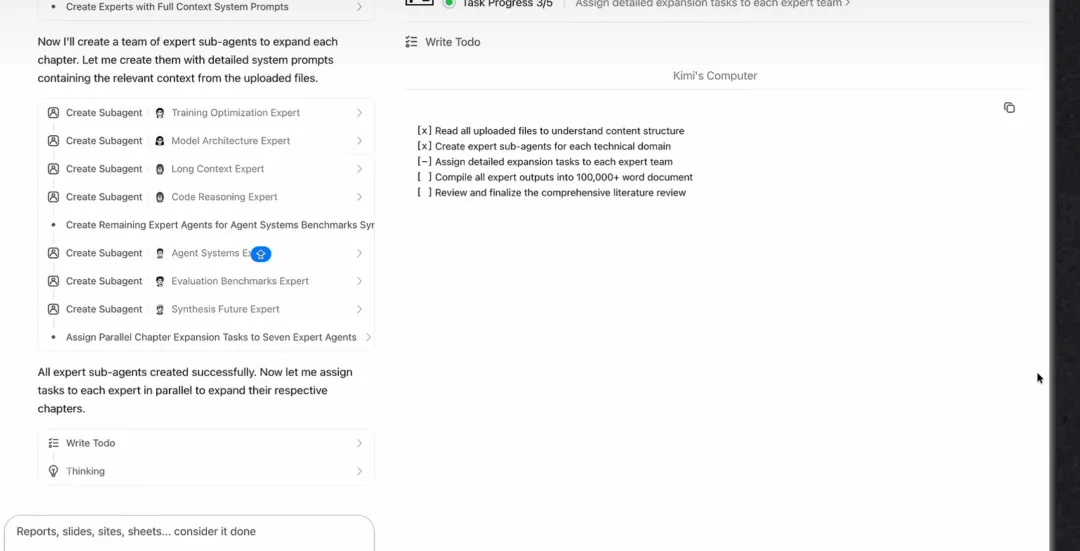 1月27日,距离中国春节不到三周,AI 圈却提前进入了"过年模式"。这一天,X 平台的热榜被三家中国公司包揽:DeepSeek、千问、Kimi。在 24 小时内相继发布重大更新的"三杰",让硅谷看到了中国开源模型的集体加速度。对月之暗面来说,这一天还有另一层意味。一年前的 1 月 20 日,Kimi K1.5 的发布被 DeepSeek 的泼天流量淹没。一年后,当创始人杨植麟罕见出镜,在装饰得极其朋克的会议室里用 4 分钟视频凝练讲解 K2.5 时,海外热度的天平似乎正在回摆。AI 编程的痛点从来不是"能不能跑",而是"能不能看"。K2.5 选择从前端代码切入,解决"最后一公里"的审美问题。它的逻辑很直接:既然大多数人描述不清楚想要什么,那就让他们指出来。上传一段 动效视频,或是截图圈出"按钮圆角不够圆润",K2.5 能直接生成带物理回弹质感的前端代码。这种 Visual Edit 交互,本质上是把设计师的"指点江山"翻译成了机器能懂的指令。同步推出的 Kimi Code,则把这种能力嵌入了 VSCode、Cursor、Zed 等主流 IDE。它不只是插件,而是一个能读取图片和视频、自动适配开发者习惯的编程环境。这是官方文章中,K2.5 在图像生成工具的辅助下,仅凭单条 Prompt 实现的网站开发实例:但 K2.5 最具野心的赌注,是 Agent Swarm(智能体集群)。再强大的单体 AI,面对"调研全球 50 家 AI 独角兽"这类任务时,也像一个人搬山——有天花板。K2.5 的解法是:让模型自己当"总指挥"。遇到复杂项目,它会动态创建数十个甚至上百个"分身":5 个翻译专家、3 个数据分析师、1 个项目经理,并行工作,交叉验证,最后汇总。官方称,这能把天级别的工作压缩到十几分钟。屏幕上炸开的几十个"正在思考"窗口,是一种"暴力美学"的视觉冲击。但背后是真正的技术挑战——杨植麟坦言,为了训练 Agent 集群的规模化能力,团队"重构了强化学习的基建"。目前该功能仍处于 Beta 阶段。任务分解的合理性、结果的质量可控性,将决定它能否从演示走向真实业务场景。但一旦跑通,研究、咨询、内容生产等行业的效率基准将被直接改写。在 HLE、BrowseComp、DeepSearchQA 等 Agent 评测中,它拿到了开源 SOTA,成本却只有闭源模型的几分之一。这不仅是技术平权,更是一种市场策略:在严守闭源的海外市场,用开源模式攻城略地,抢占开发者心智与标准定义权。当 K2.5 能批量制造具有"Kimi 审美"的网页、应用、PPT,它实际上在把自己的能力打包成可复用的基础设施。开源,是让这种基础设施快速渗透的最短路径。以前咱们总说"超级个体",听着特精英,特遥不可及,好像得先辞职、买Mac、泡咖啡厅才能开始。但K2.5这玩意儿最损的地方在于,它把你"想干事"和"能干成"之间的那堵墙,直接给拆了。现在,不需要先学Python才能搞爬虫,不需要先报UI课才能做产品,甚至不需要搞懂什么叫"Agent"。有一个想法,剩下的事,Kimi带着它的AI军团兜底。当然,不是说有了Kimi你就能躺赢了。该踩的坑一个不少,该熬的夜还得熬。但区别在于,以前卡在"我不会",现在只剩"想不想"。这才是"Scale your ambition"的潜台词——不是让你野心膨胀去征服世界,而是让你敢对自己那些"不靠谱"的小念头说:要不,试试?