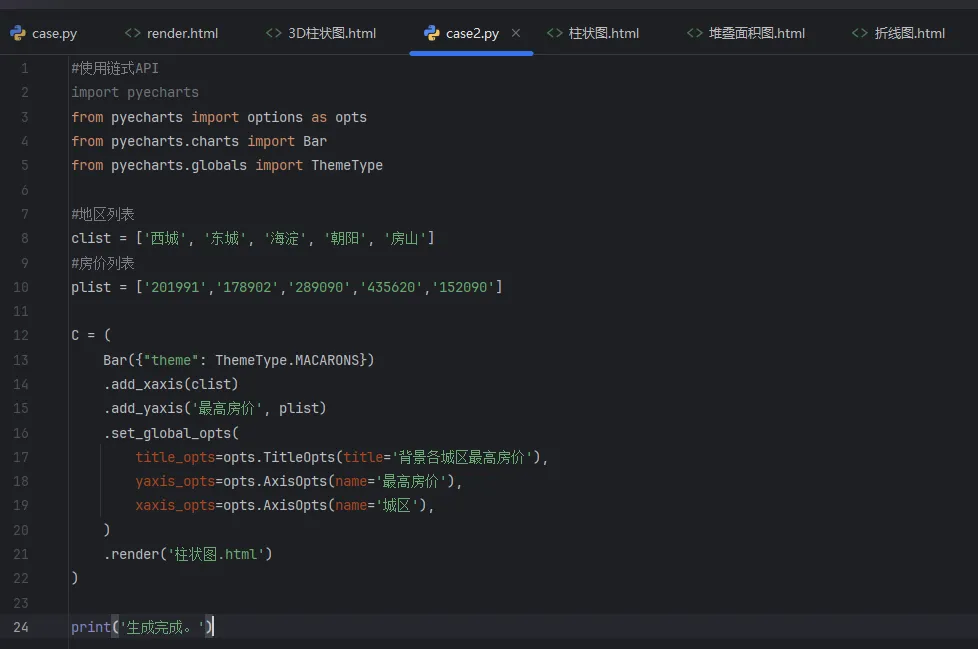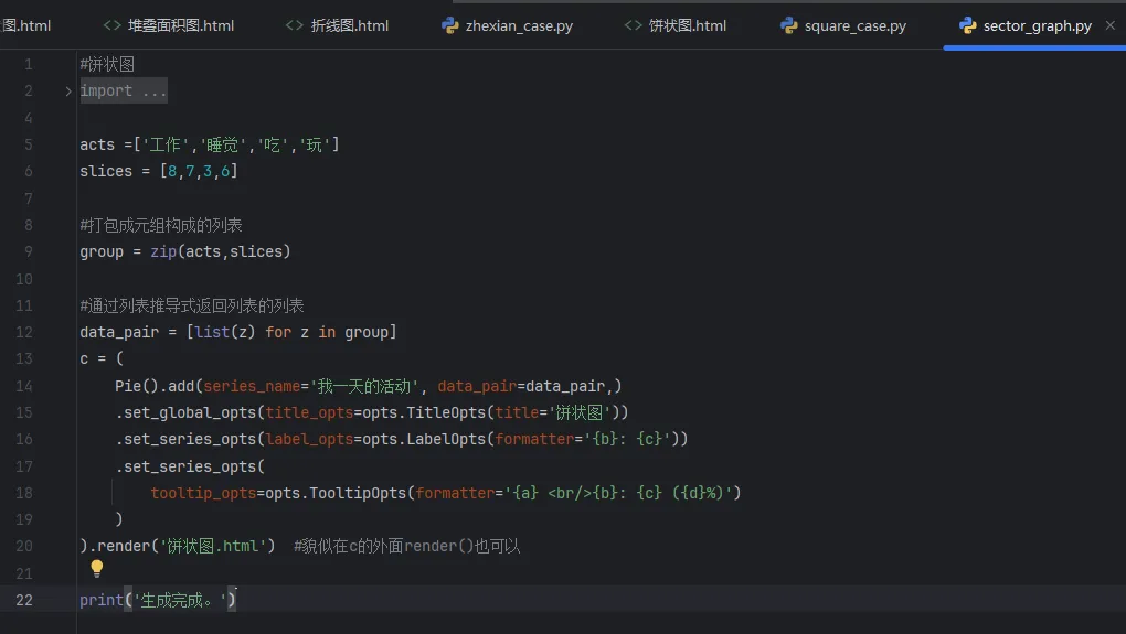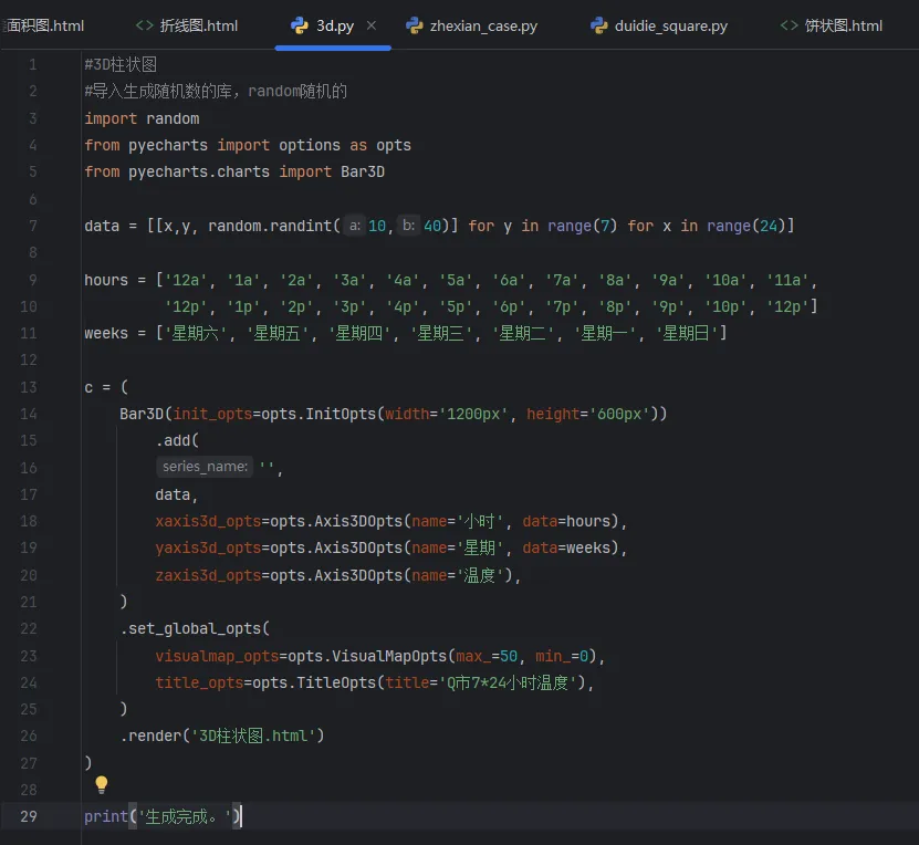 之前的Django+Vue3,最小路径实践中,最后看的是本地部署的效果,后面会学一下怎么发布到腾讯云服务器通过域名访问。由于其他事项繁忙,所以要过段日子才会发出来。这次分享一下pyecharts的几个效果,大佬们多指导。考虑多少要加一点简单的数据分析与展示技能,粗浅的捋了一下小白自学的技能组合,如pandas+seaborn+pyecharts。无意间翻到《看漫画学Python2》中介绍了Pyecharts的一些效果,就跟着码一下看看效果。python -m pip install pyecharts