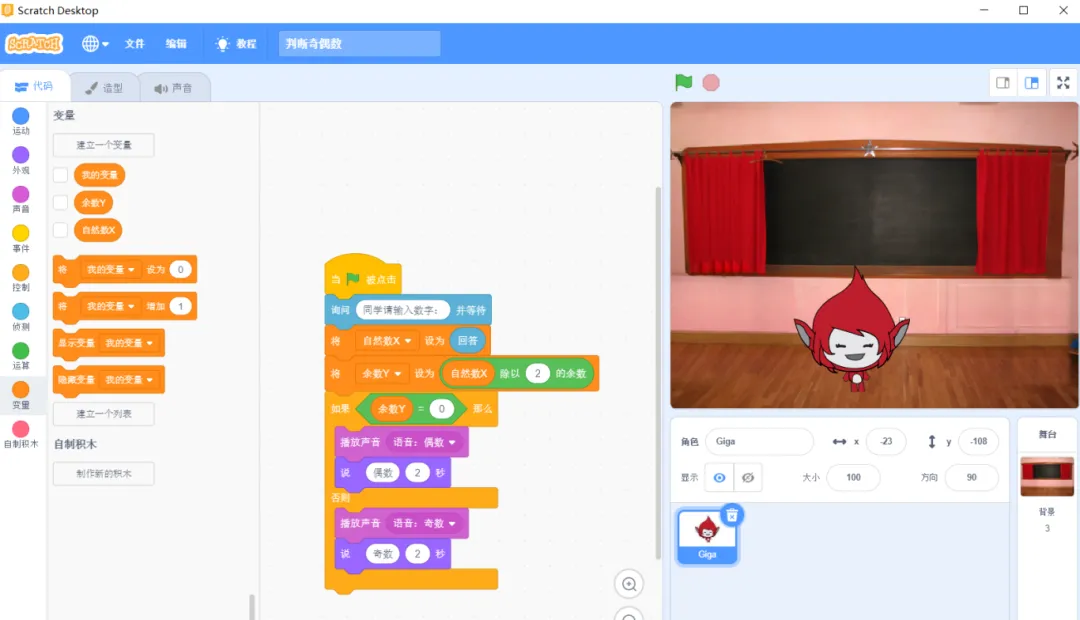 Scratch判断奇偶数程序