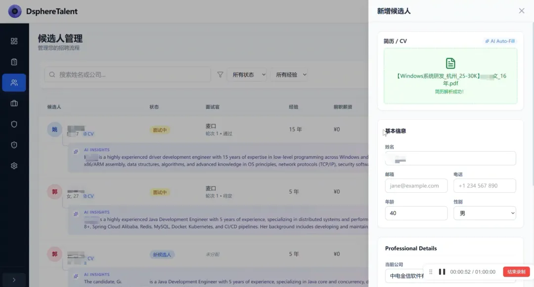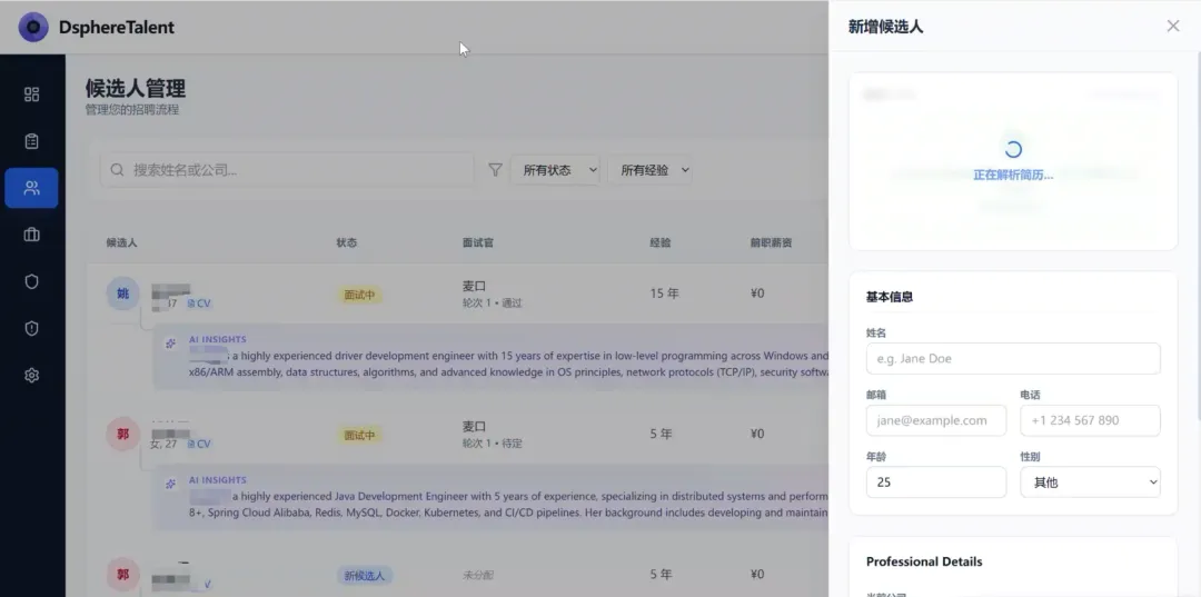这其实是一个非常基础的 HRM 系统的一个小模块而已,成规模的企业基本都有这样的系统。但是中小企业基本都是靠邮箱、Excel 和口口相传,来进行人员招聘的管理。我琢磨着要么借助于 AI 搞一个凑合的系统用用好了,于是我就开始动手了。