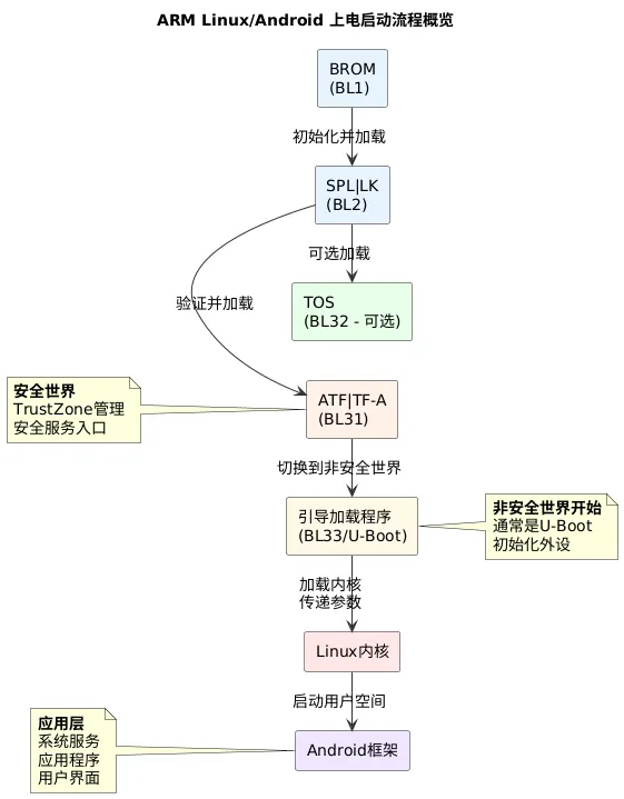 今天,我们首先来理解一个基础且关键的主题:上电启动流程。在ARM架构中,完整的启动过程可分为多个阶段,每一阶段都由专门的软件系统承载和推动——注意,这里指的是完整的软件体系,而非孤立的组件。