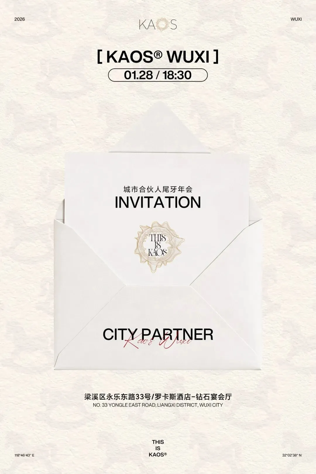 2026 年,KAOS® WUXI将带着所有合伙人的信任与期许,在产品升级、品牌破圈、生态搭建的路上继续奔跑。我们承诺:每一步决策都与你共创,每一份成果都与你共享。