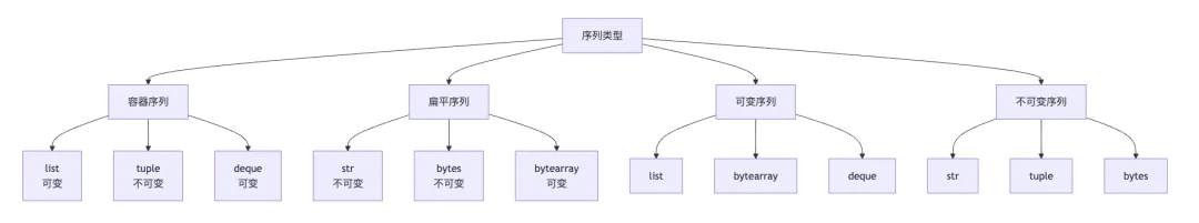 在Python中,列表、元组和字符串都属于序列类型(Sequence)。序列类型可以分为更细的类别: