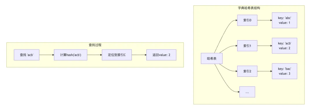 # 字典的键必须是可哈希的# 可哈希 = 支持hash()且不可变hashable = (1, 2, 3) # 元组可哈希# unhashable = [1, 2, 3] # 列表不可哈希# 字典的哈希冲突处理:开放寻址法d = {}d['abc'] = 1d['acb'] = 2d['bac'] = 3