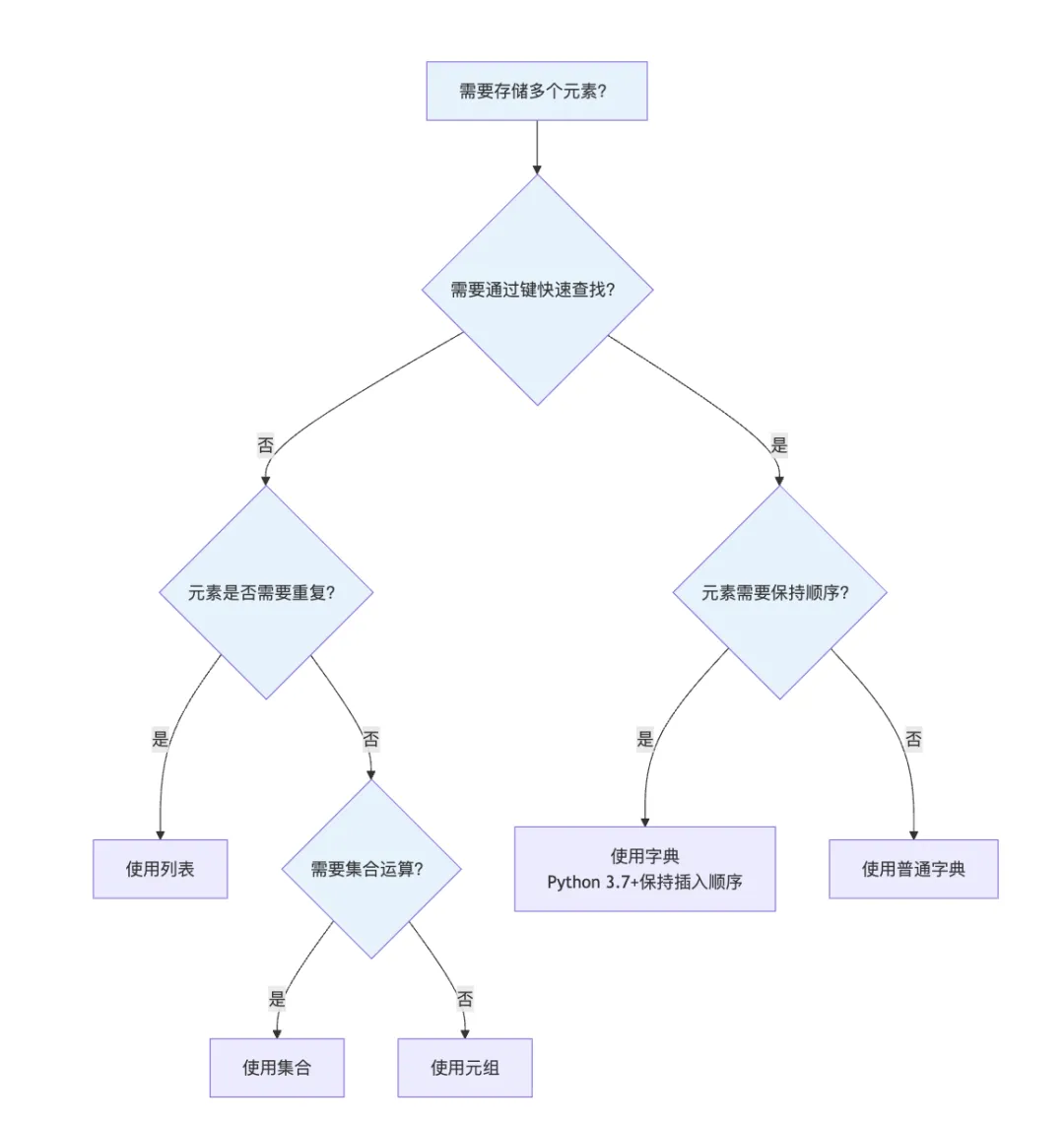 - 集合(set):无序不重复元素,支持集合运算,适用于去重和成员测试