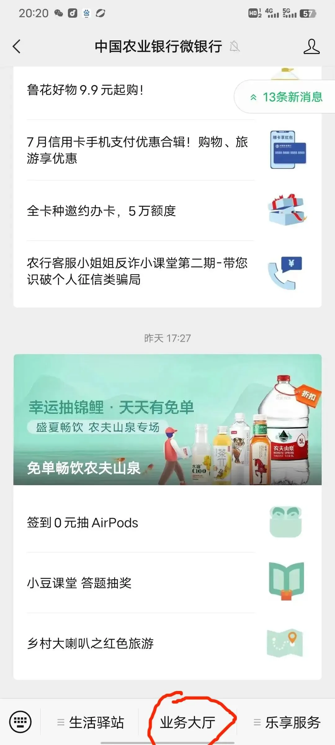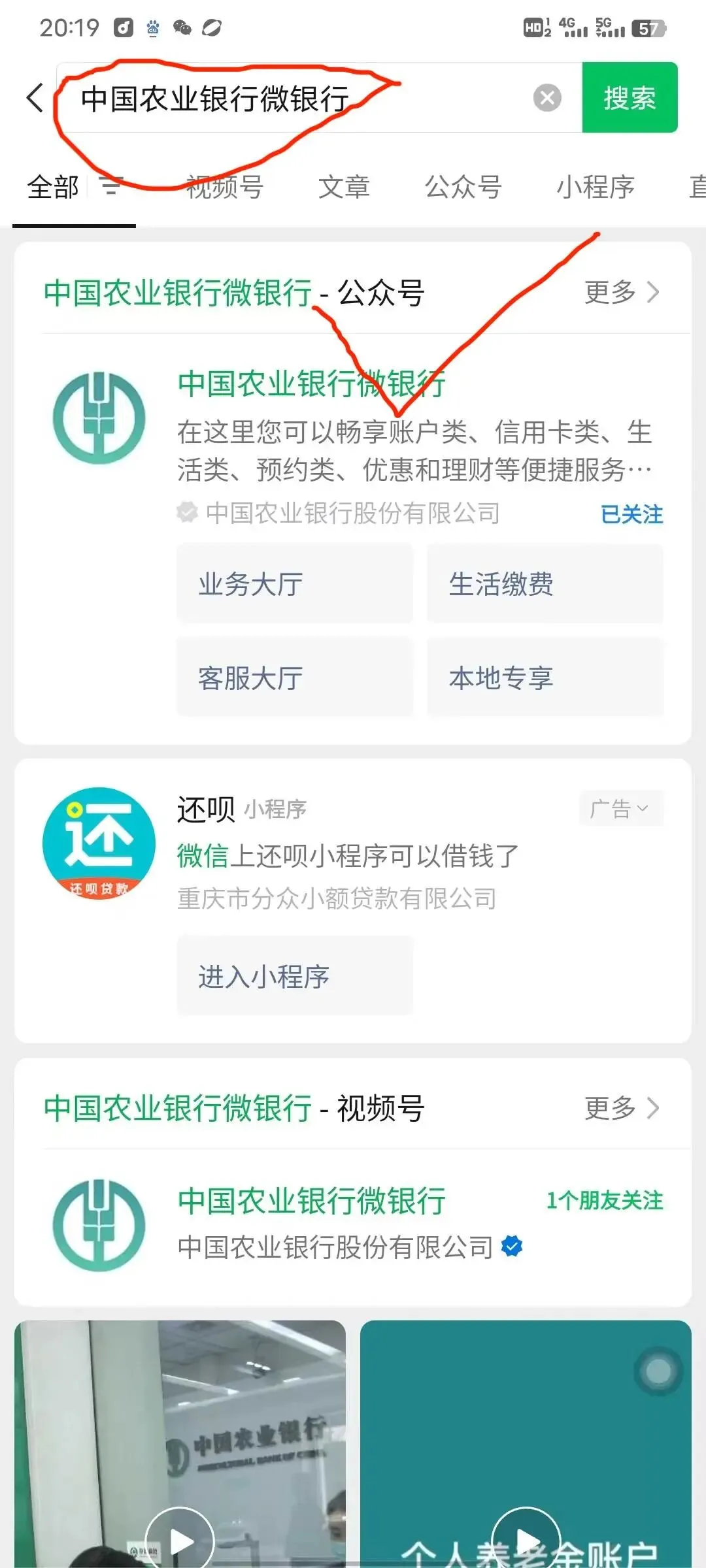 1、微信搜索:中国农行银行微银行--业务大厅--我的账号