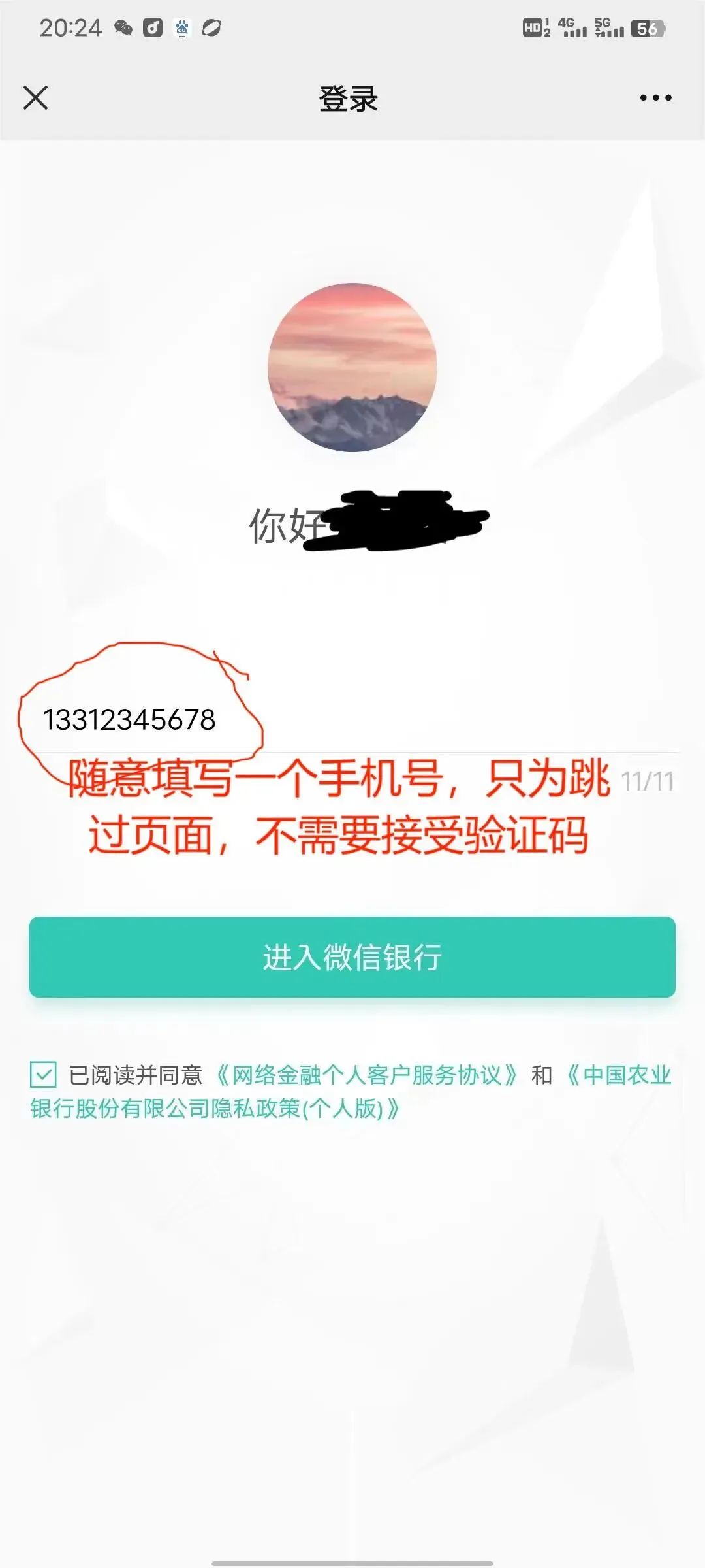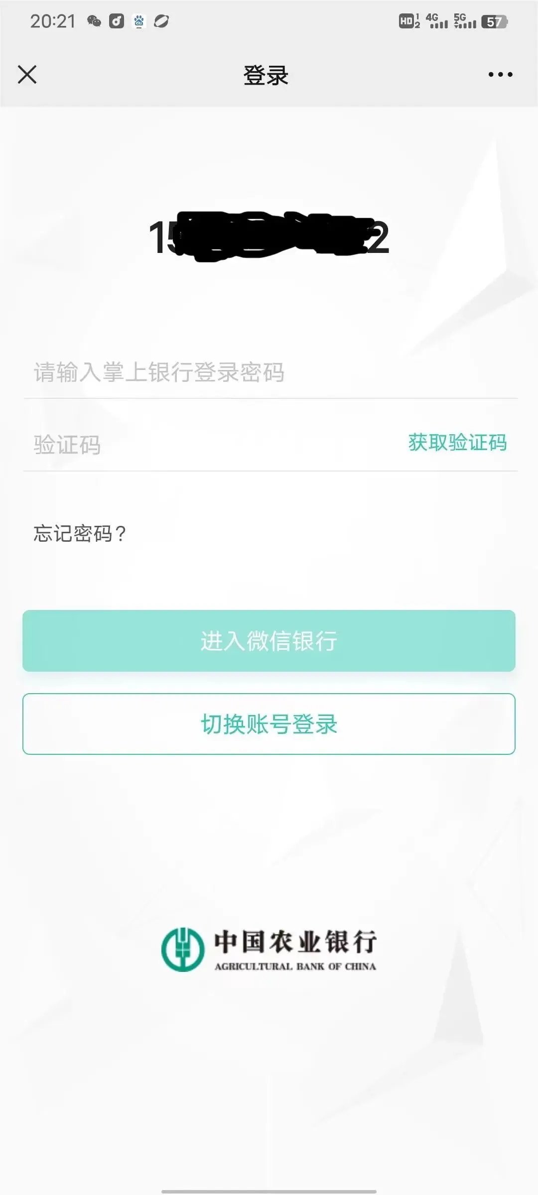 3、登录页面如果是下图则进行下一步,输入【非农行】手机号进行登录