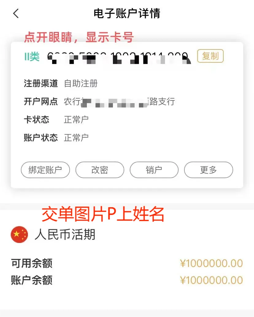 7、开户完成后,到农行APP--首页--我的账户--点击新开的二类电子账户换绑成一类农行卡(大额资金更方便进出)。