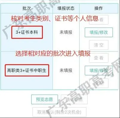志愿填报设本科院校及专科院校两个批次,本科批次和专科批次填报志愿同时进行。