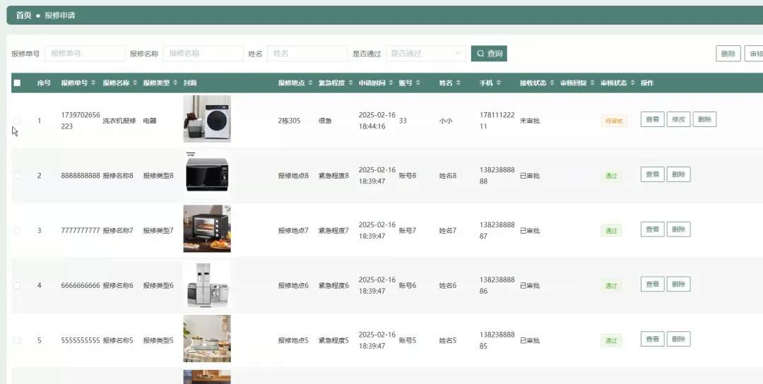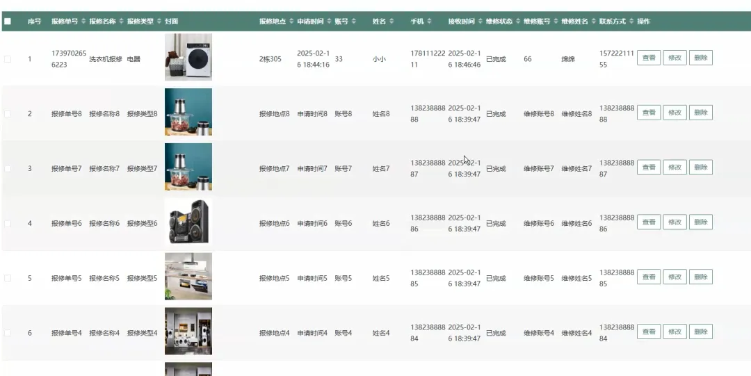 # 引入SparkSession用于模拟数据分析场景(虽然主系统是Django+MySQL,但可扩展此脚本进行离线分析)from pyspark.sql import SparkSessiondef analyze_repair_trends(): spark = SparkSession.builder \ .appName("RepairTrendAnalysis") \ .config("spark.sql.warehouse.dir", "file:///C:/temp/spark-warehouse") \ .getOrCreate() # 假设通过JDBC读取MySQL中的repair_orders表 jdbc_url = "jdbc:mysql://localhost:3306/university_logistics?user=root&password=123456" repair_df = spark.read.format("jdbc").options(url=jdbc_url, dbtable="repair_orders", driver="com.mysql.cj.jdbc.Driver").load() repair_df.createOrReplaceTempView("repairs") # 使用Spark SQL分析各楼宇报修数量 trend_result = spark.sql("SELECT location, COUNT(*) as repair_count FROM repairs GROUP BY location ORDER BY repair_count DESC") trend_result.show() spark.stop()def submit_repair(request): try: user_id = request.POST.get('user_id') contact = request.POST.get('contact') location = request.POST.get('location') description = request.POST.get('description') image = request.FILES.get('image') # 数据校验 if not all([user_id, contact, location, description]): return {'status': 'error', 'message': '信息不完整,请检查后提交'} # 创建报修单对象 new_order = RepairOrder() new_order.user_id = user_id new_order.contact = contact new_order.location = location new_order.description = description new_order.status = '待处理' # 处理图片上传 if image: save_path = f'uploads/repairs/{user_id}_{image.name}' with open(save_path, 'wb+') as destination: for chunk in image.chunks(): destination.write(chunk) new_order.image_path = save_path new_order.save() return {'status': 'success', 'message': '报修提交成功,请耐心等待处理', 'order_id': new_order.id} except Exception as e: print(f"提交报修失败: {e}") return {'status': 'error', 'message': '系统繁忙,请稍后再试'}def assign_repair(request): try: admin_id = request.session.get('admin_id') order_id = request.POST.get('order_id') staff_id = request.POST.get('staff_id') # 权限和参数校验 if not admin_id or not order_id or not staff_id: return {'status': 'error', 'message': '分配失败,参数或权限错误'} repair_order = RepairOrder.objects.get(id=order_id) if repair_order.status != '待处理': return {'status': 'error', 'message': '该工单已被处理,无法重复分配'} # 更新工单状态和负责人 repair_order.status = '处理中' repair_order.assigned_staff_id = staff_id repair_order.assigned_time = timezone.now() repair_order.save() # 此处可添加通知逻辑,例如给维修人员发送站内信或短信 return {'status': 'success', 'message': f'工单已成功分配给维修员 {staff_id}'} except RepairOrder.DoesNotExist: return {'status': 'error', 'message': '分配失败,未找到该报修单'} except Exception as e: print(f"分配工单失败: {e}") return {'status': 'error', 'message': '系统内部错误,分配失败'}