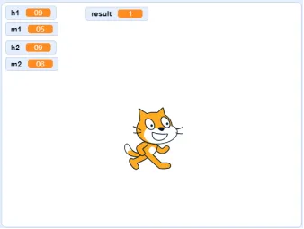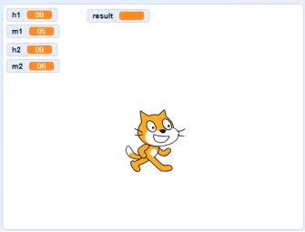 默认小猫角色和白色背景,小明在为自己规划学习时间。现在他想知道两个时刻之间有多少分钟。你能通过编程帮他做到吗?