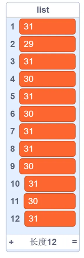 创建一个存储每月天数的列表list: