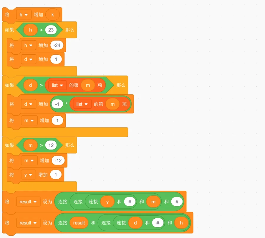 输入:y = 2025, m = 12, d = 31, h = 23, k = 7输出:result = 2026#1#1#6【测试用例3】