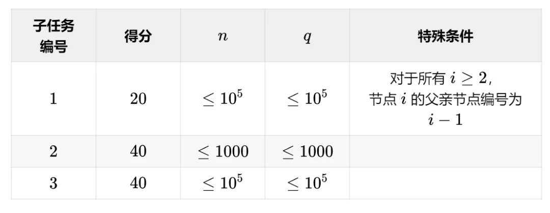 小杨有⼀棵包含 个节点的二叉树,且根节点的编号为 。这棵二叉树任意⼀个节点要么是白色,要么是黑色。之后小杨会对这棵二叉树进行 次操作,每次小杨会选择⼀个节点,将以这个节点为根的子树内所有节点的颜色反转,即黑色变成白色,白色变成黑色。